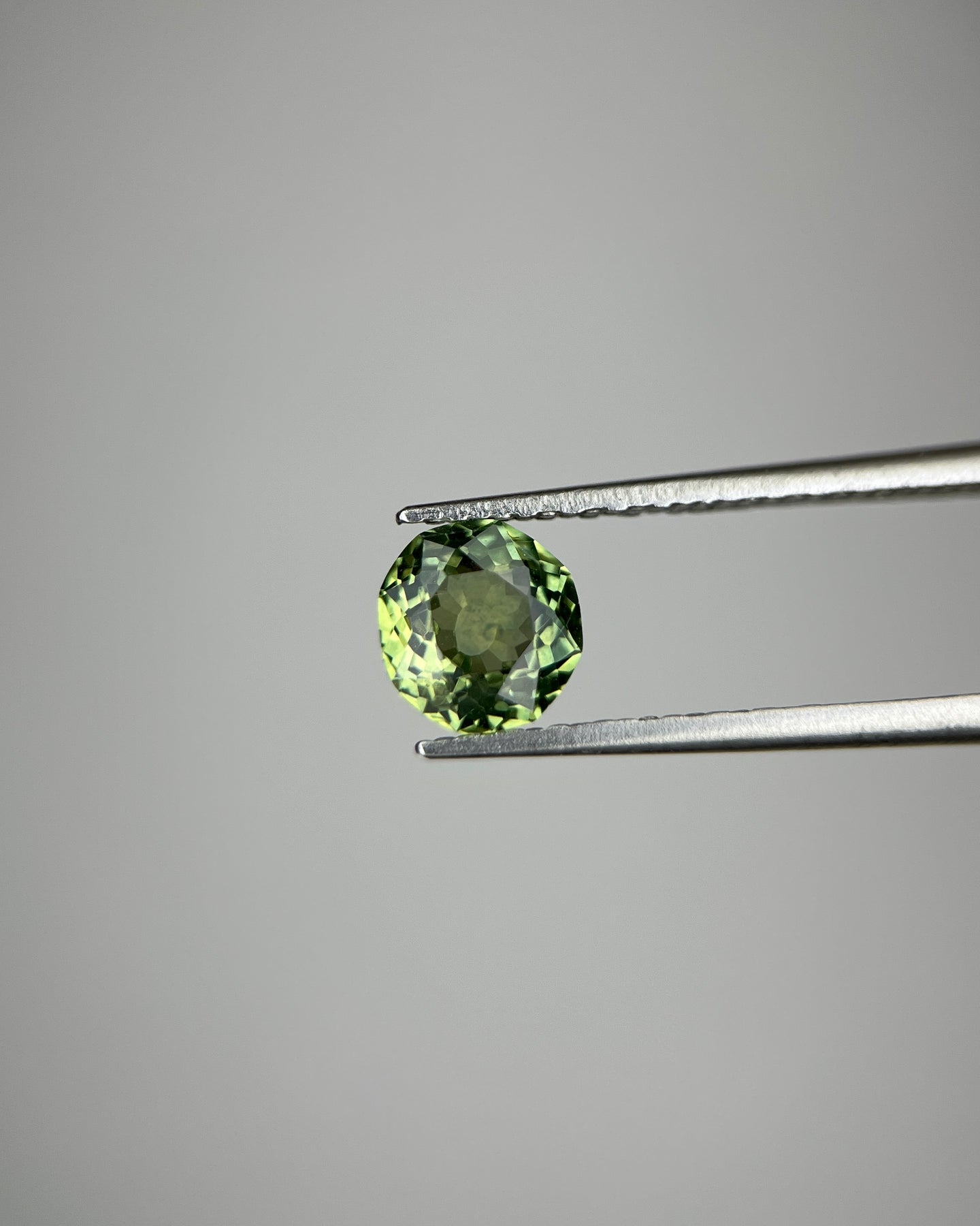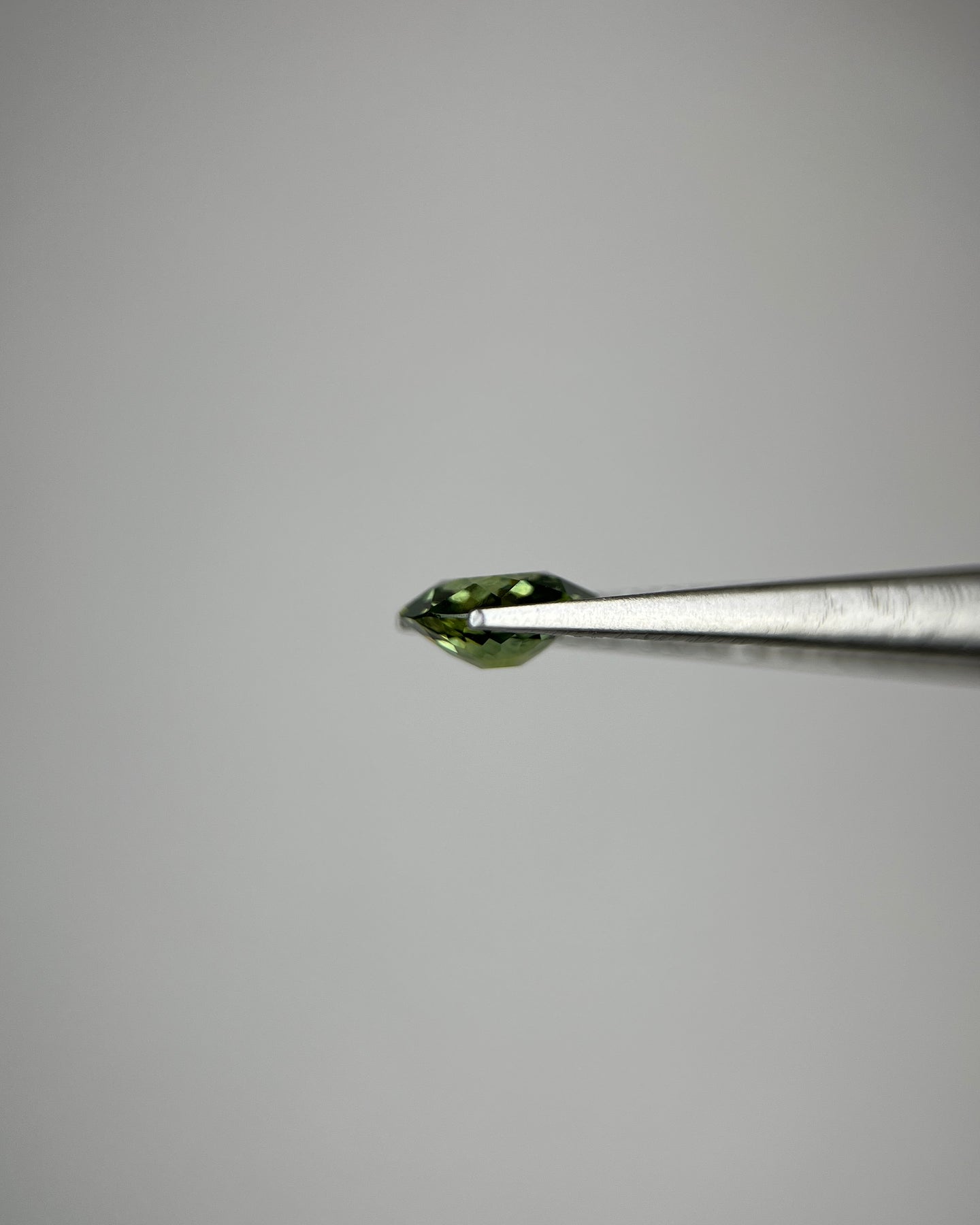 This rich green Montana Sapphire has the glow of moss warmed by the sun. Deep, earthy, and alive. The softly squared shape and dense inner color give the stone a grounded presence, while bright facets flicker like light through a canopy. A vivid, one-of-a-kind choice for a natural engagement ring.