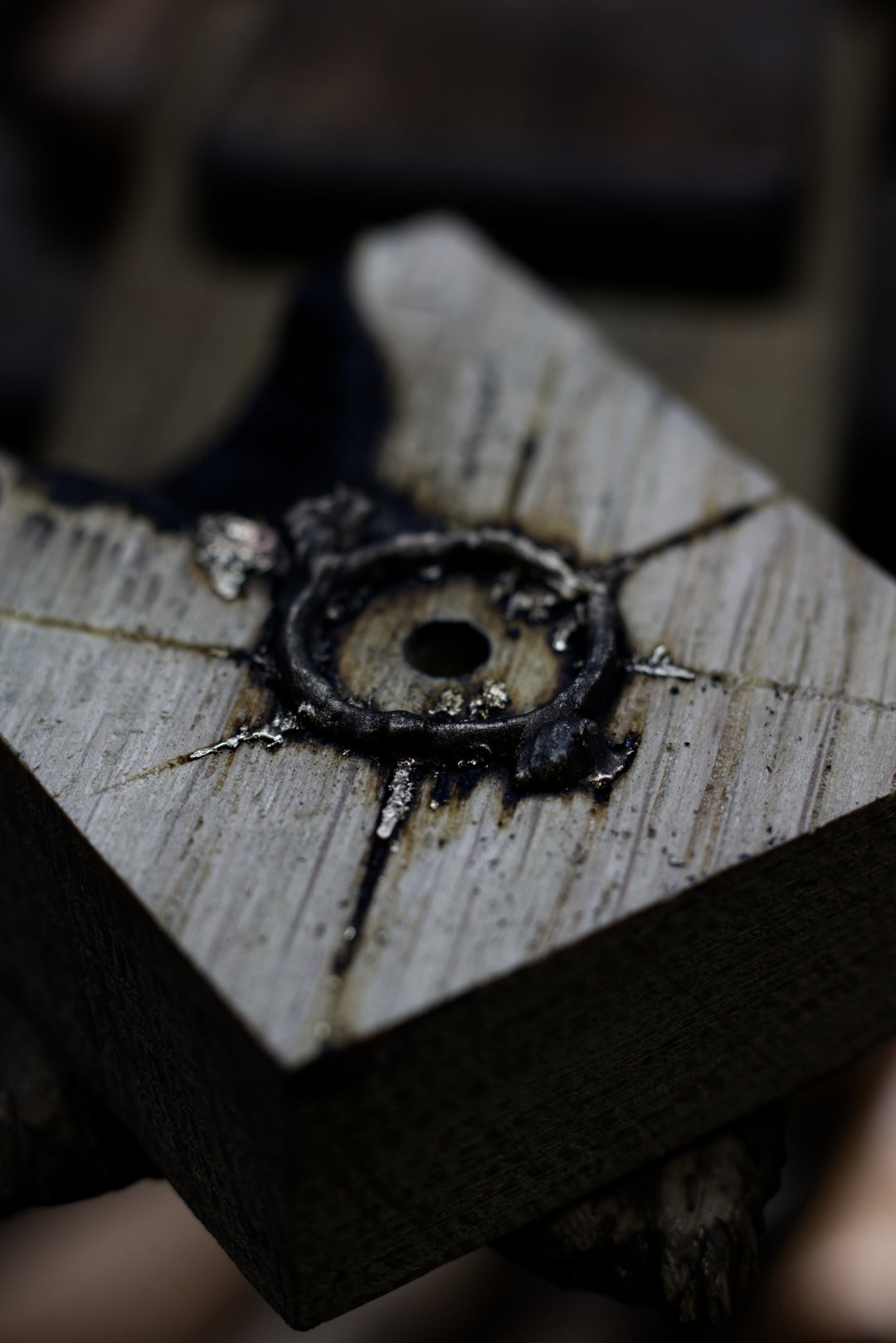 The cast in wood process is based on an ancient roman technique, not seen for at least a thousand years. Developed by David Watkins, the designer behind Rigby Leigh, this method of forging fine jewelry in a wooden crucible gives our jewelry the most genuinely natural & organic shape and texture, as it is the very grain of the wood that provides the unique beauty in each piece.