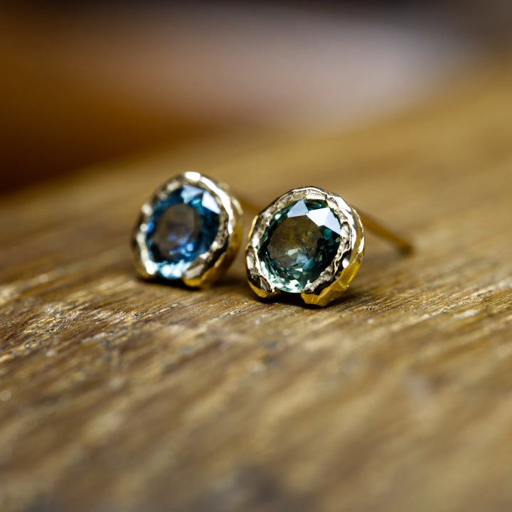 Ethically sourced Montana Sapphires, naturally cut by hand in our Brooklyn studio. Set in 18k Yellow Gold (eco recycled).